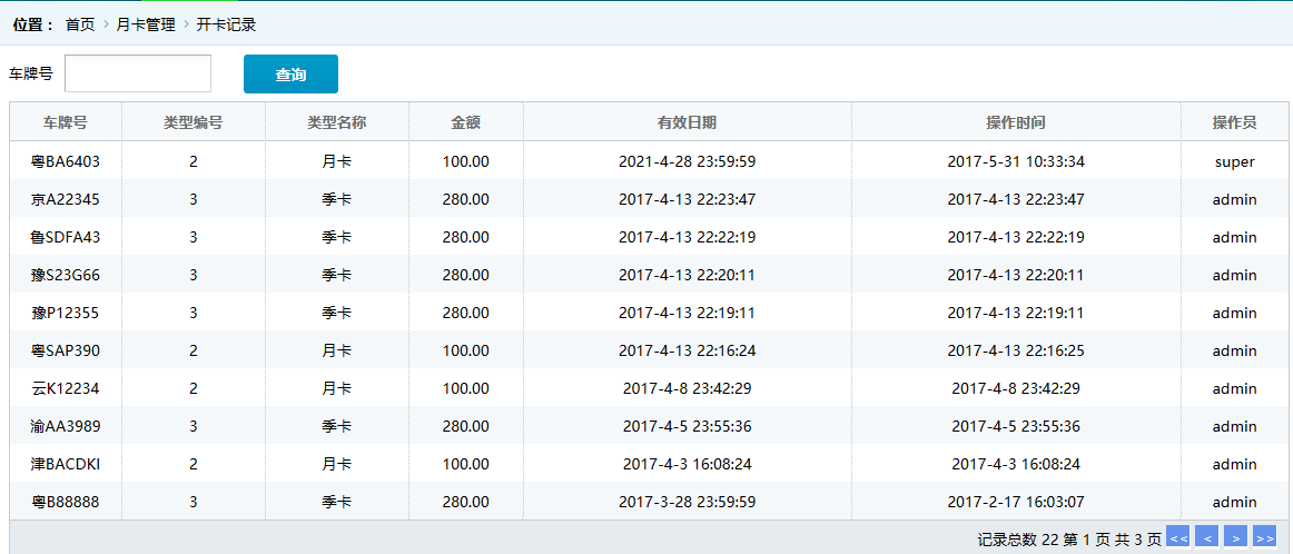 ●開卡記錄 顯示辦理月卡的歷史記錄,如圖: