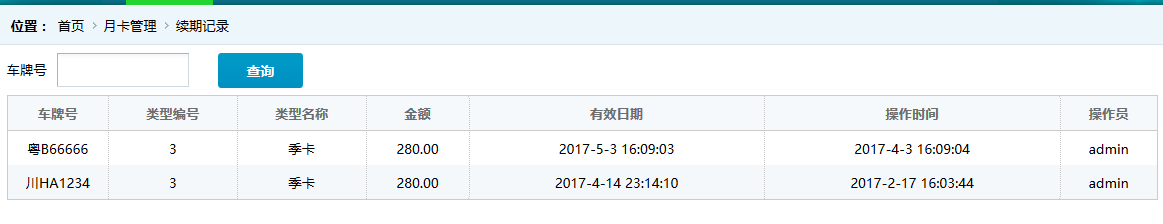 ●續(xù)期記錄 顯示續(xù)辦月卡的歷史記錄,如圖: